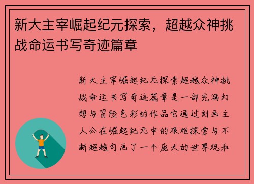 新大主宰崛起纪元探索,超越众神挑战命运书写奇迹篇章